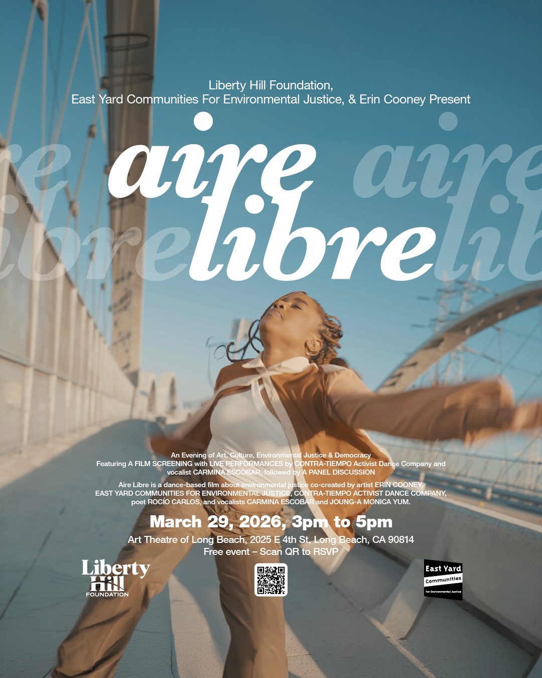 Presented by Liberty Hill Foundation, East Yard Communities for Environmental Justice, and Erin Cooney, Aire Libre will bring together artists, organizers, and community voices for a powerful celebration of movement, resilience, and imagination.